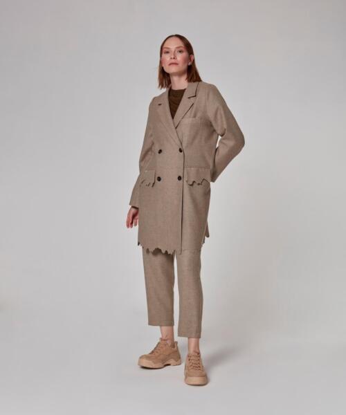 Laser Cut Jacketed Wool Perla Suit – Beige – 1068-2
