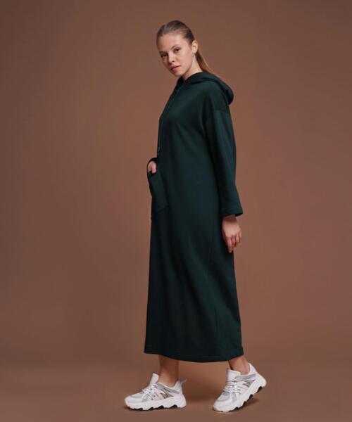 Long Three-Thread Sweat Dress – Emerald Green – 1082