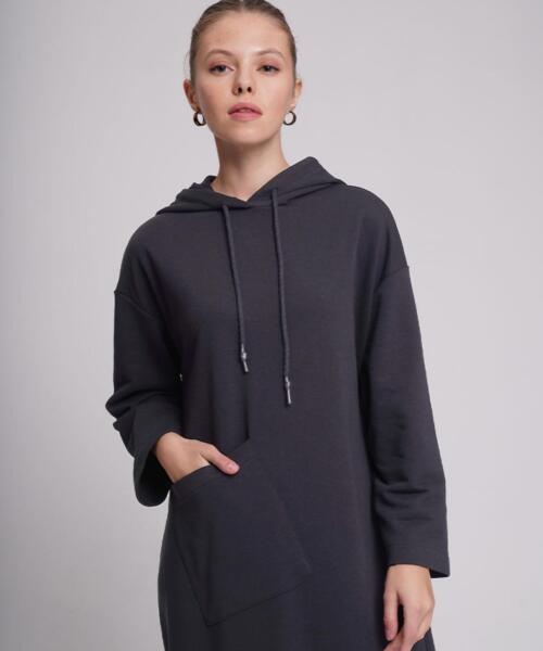 Long Three-Thread Sweat Dress – Anthracite Color – 1082