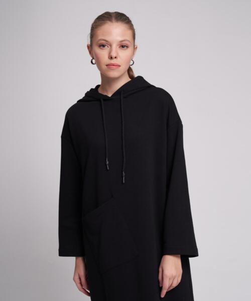 Long Three-Thread Sweat Dress – Black – 1082