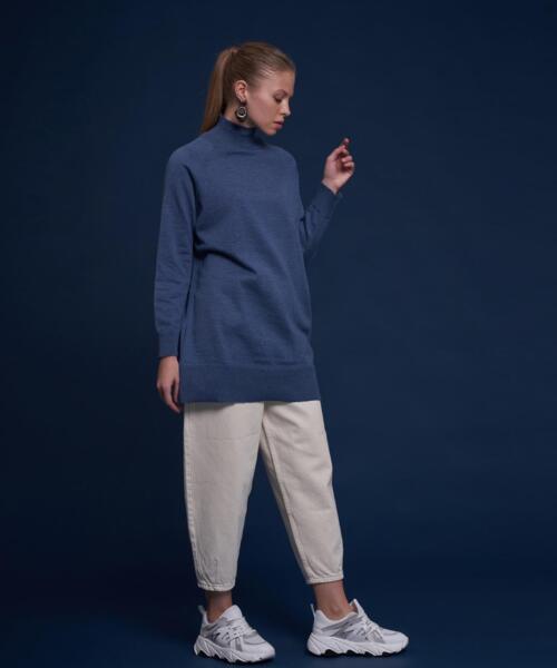 Knitwear Turtleneck Long Sweater – Indigo – 14096-19