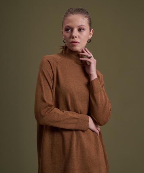 Knitwear Turtleneck Long Sweater – Camel Color – 14096-19