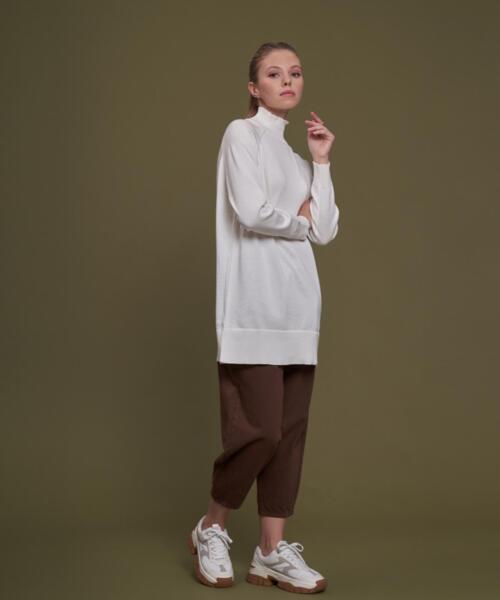 Knitwear Turtleneck Long Sweater – Ecru – 14096-19