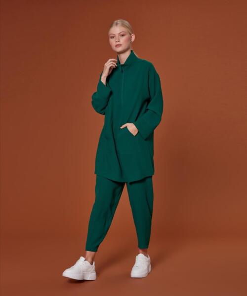 Kangaroo Pocket Zipper Anna Suit – Green – 1088