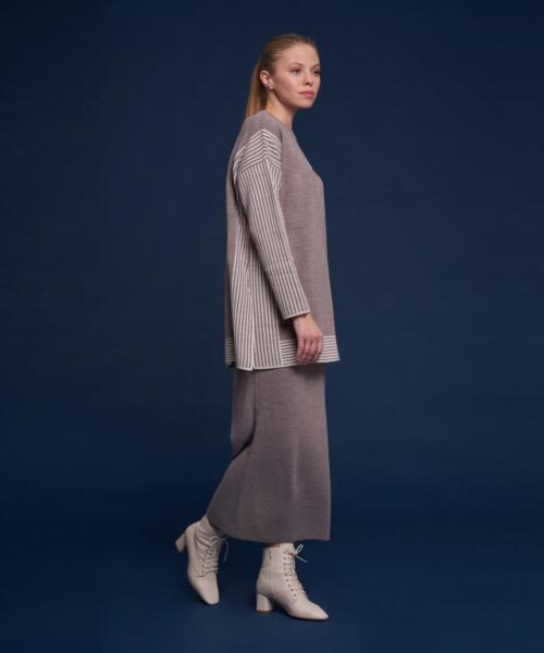 Knitwear Line Detailed Skirt Suit – Mink Color – 14106