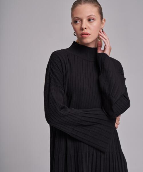 Knitwear Line Detailed Skirt Suit – Black – 14106