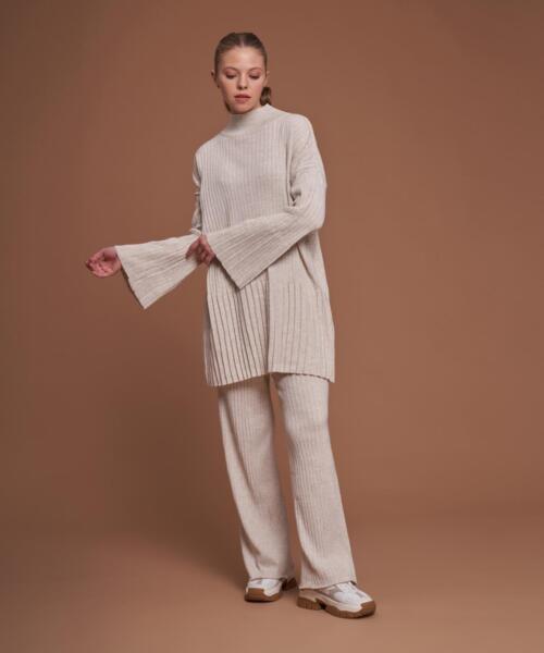 Knitwear Pleated Trousers Suit – Beige Stone Color – 14094