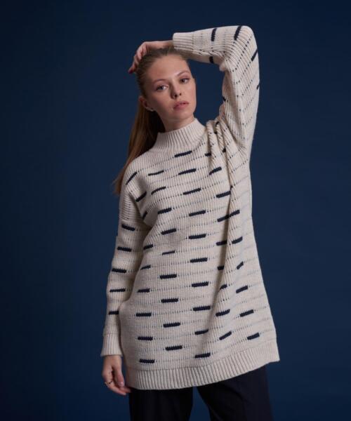 Knitwear Line Patterned Oversize Sweater – Ecru – 7083