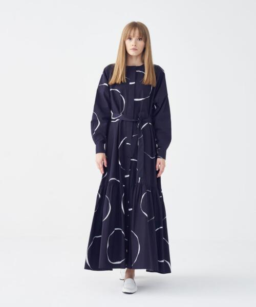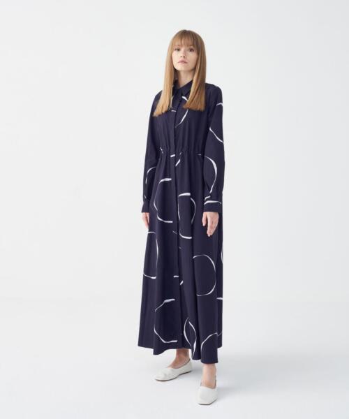 Organic Cotton Printed Dress – Navy Blue – 4061