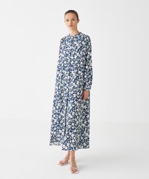 Patterned Flowy Dress – Indigo – 2481