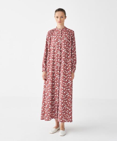 Patterned Flowy Dress – Brick Color – 2481