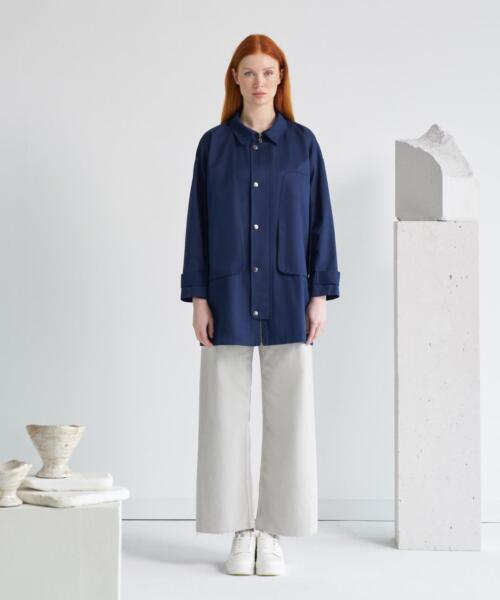 Pocket Detailed Trench Coat – Navy Blue – 3803