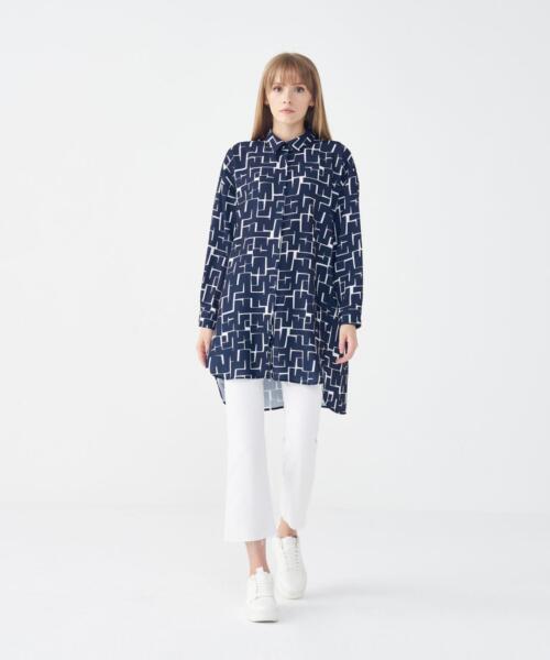 Printed Mona Shirt – Geometric Navy Blue – 2407