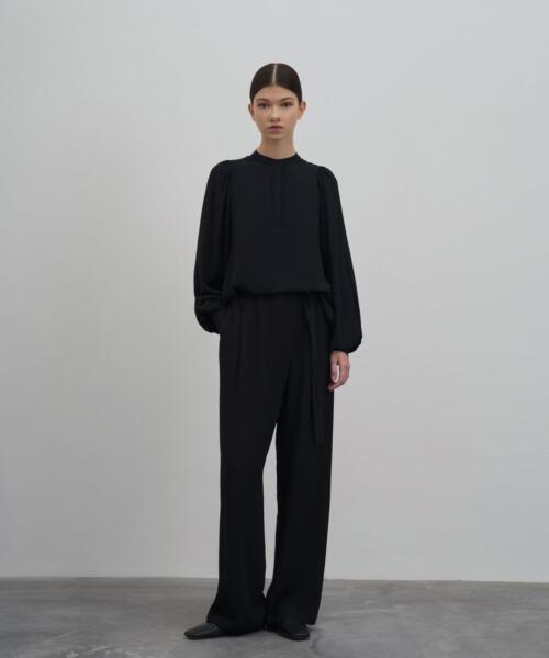 Flowy Balloon Sleeve Shirt – Black – 23207