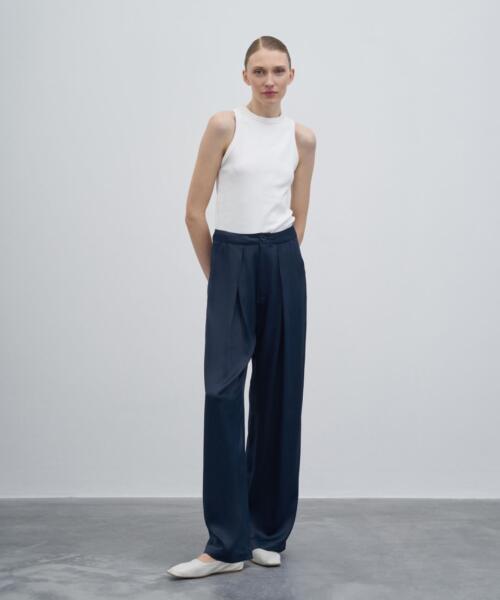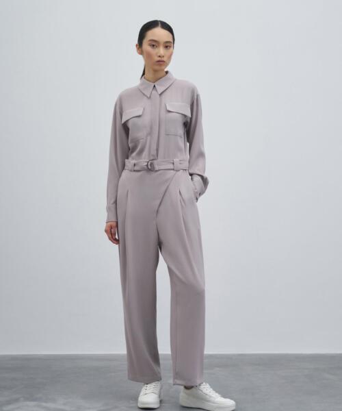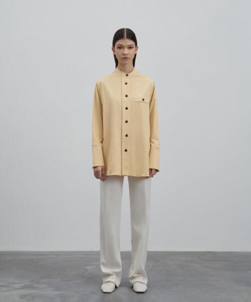 Pleated Vegan Cupro Shirt – Cream Color – 23253
