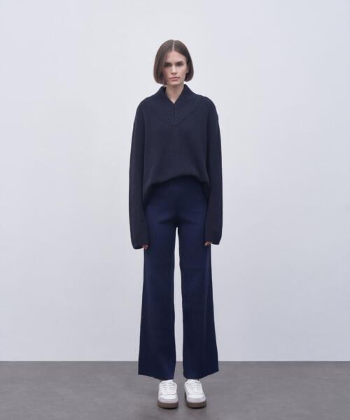 Ribbed Knitwear Trousers – Navy Blue – 14141