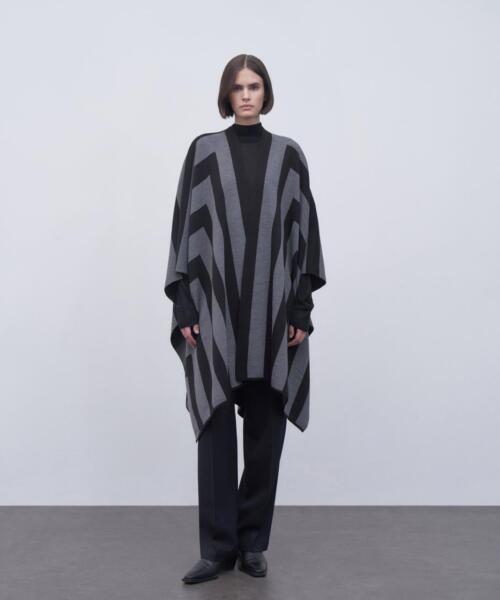 Striped Knitwear Poncho – Black – 14138