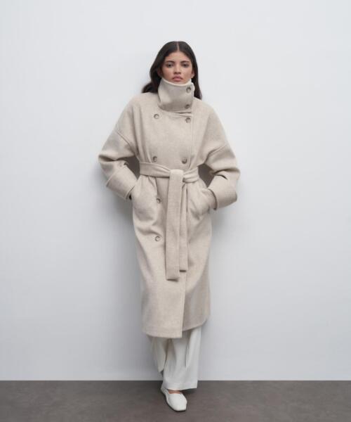Stand Collar Coat – Beige – 23340