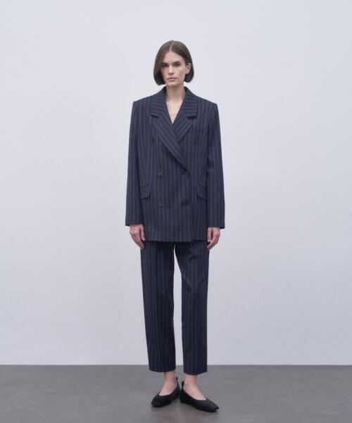 Striped Double Breasted Blazer Suit – Navy Blue – 23357-1
