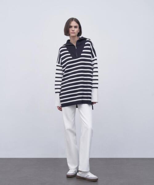 Striped Zipper Knitwear Sweater – Ecru – 14140