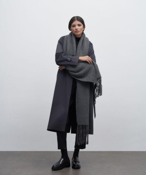 Tasseled Knitted Scarf – Anthracite Color – 7136