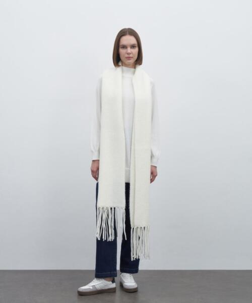 Tasseled Knitted Scarf – Ecru – 7136
