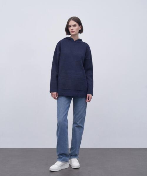 Hooded Knitwear Sweater – Navy Blue – 7130
