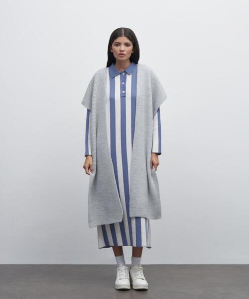 Hooded Knitwear Scarf – Grey – 7137