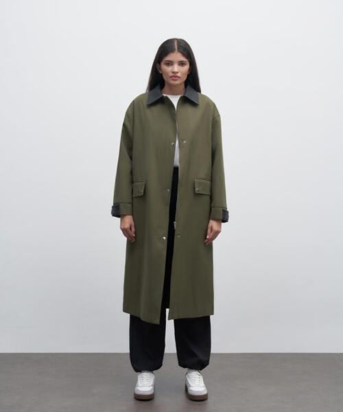 Leather Collar Parka – Khaki – 23350