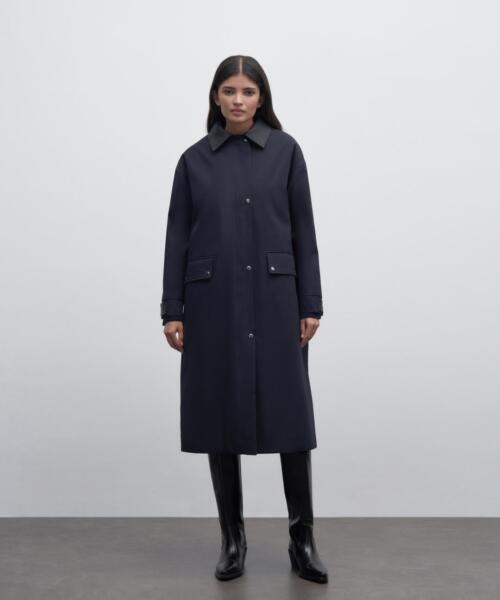 Leather Collar Parka – Navy Blue – 23350
