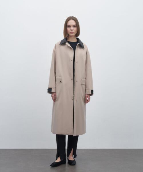 Leather Collar Parka – Beige – 23350