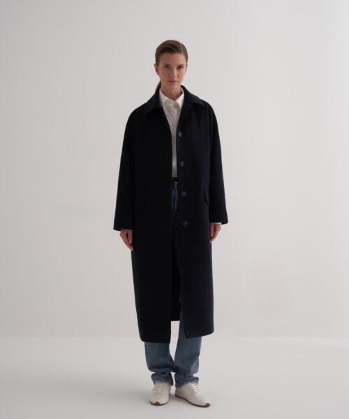 Bat Sleeve Wool Coat – Navy Blue – 25102
