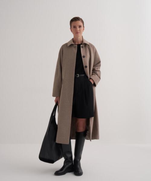 Bat Sleeve Wool Coat – Beige – 25102