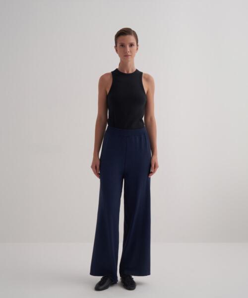Rayon Mercerized Loose Trousers – Navy Blue – 38001