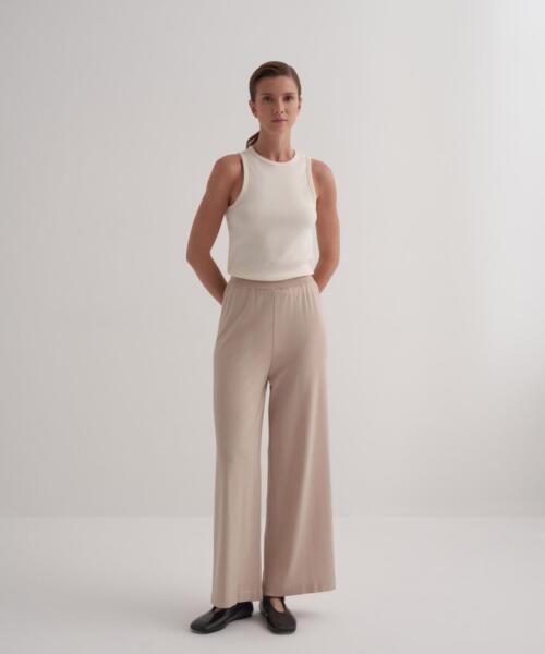 Rayon Mercerized Loose Trousers – Beige – 38001