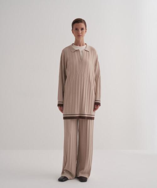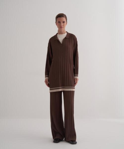 Rayon Mercerized Polo Collar Set – Açık Kahverengi – 38002