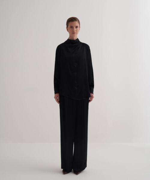 Satin Suit Tied at the Neck – Black – 25111