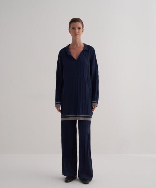 Rayon Mercerized Polo Collar Set – Navy Blue – 38002