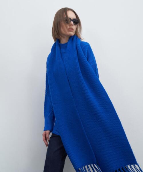 Tasseled Knitted Scarf – Sax Blue – 7136
