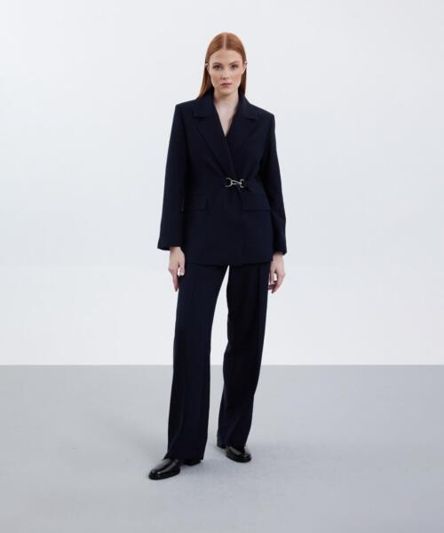 Buckle Detailed Blazer Suit – Navy Blue – 23315