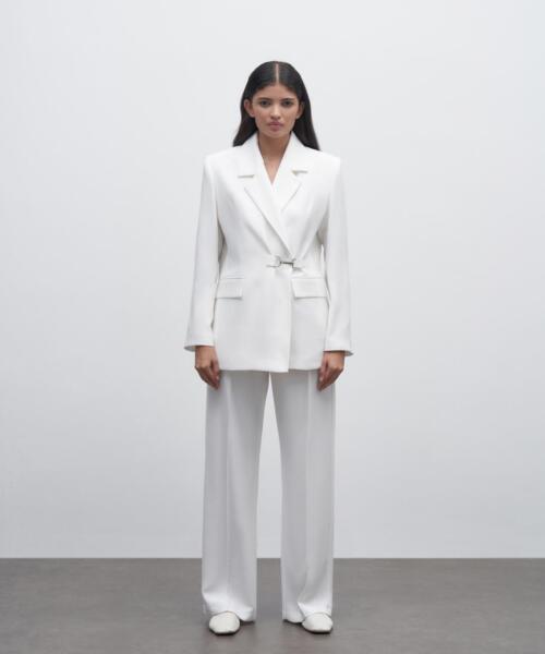Buckle Detailed Blazer Suit – Ecru – 23315