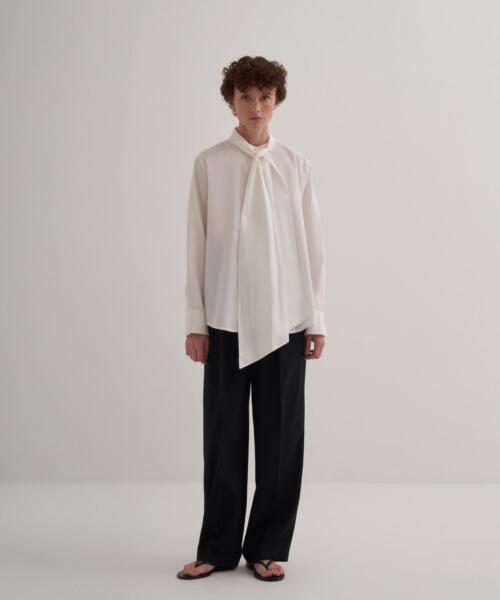 Bow Detailed Cotton Shirt – Ecru – 24132