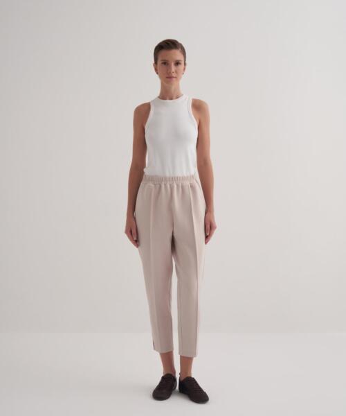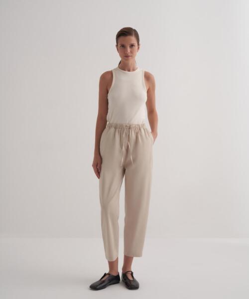 Carrot Trousers with Elastic Waist – Beige – 24157