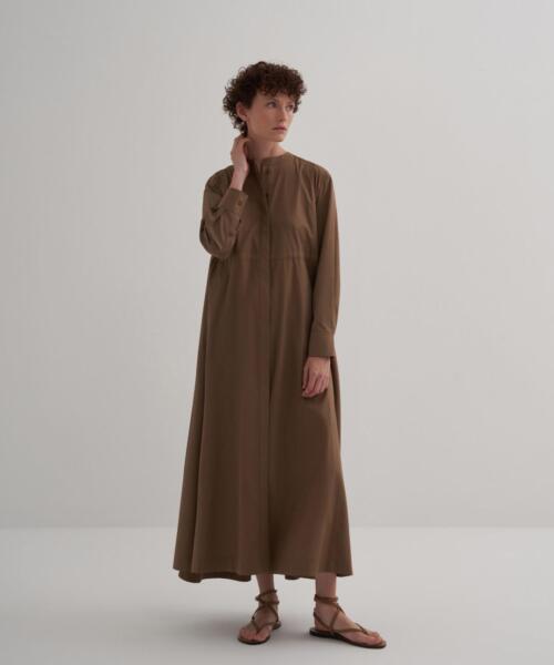 Gathered Pleated Cotton Shirt Dress – Olive Green – 24198