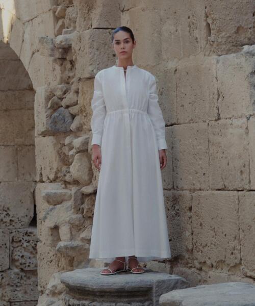 Gathered Pleated Cotton Shirt Dress – Ecru – 24198
