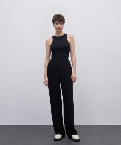 Pleated High Waist Trousers – Black – 23289-24