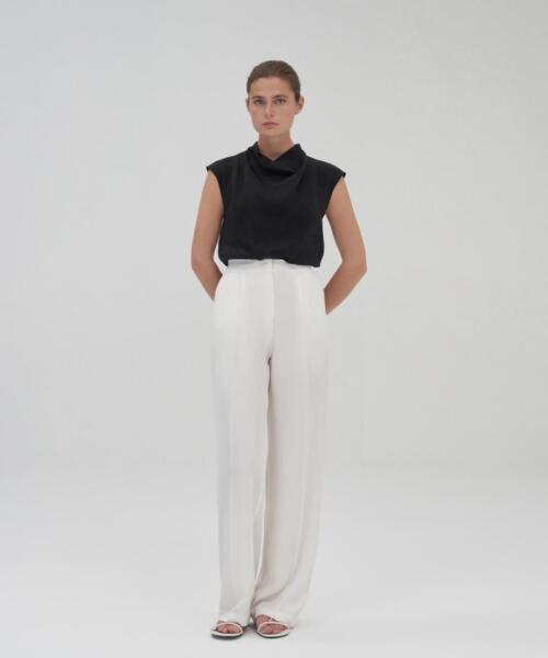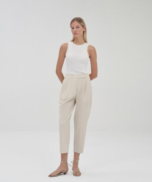 Pleated High Waist Trousers – Ecru – 23289-24