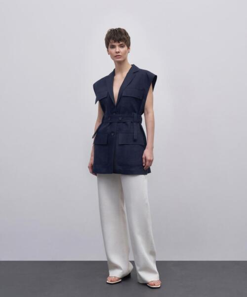100% Linen Belted Vest – Navy Blue – 23273-24