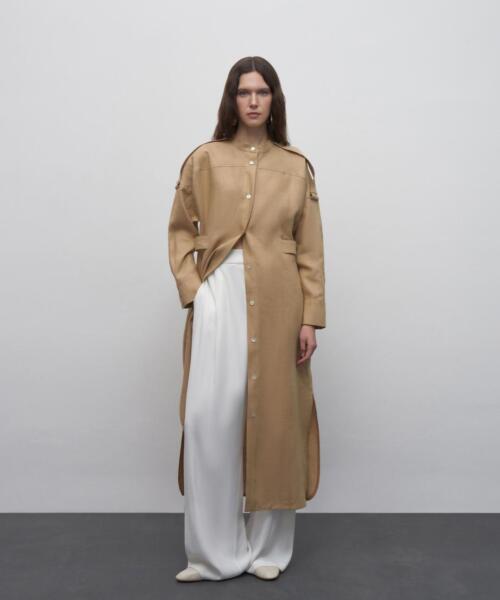 100% Linen Button Detailed Shirt Dress – Camel Color – 24121