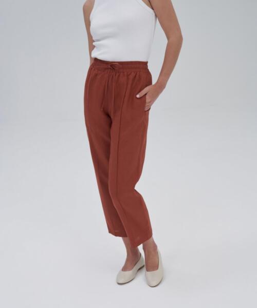 100% Linen Carrot Trousers – Brick Color – 24203